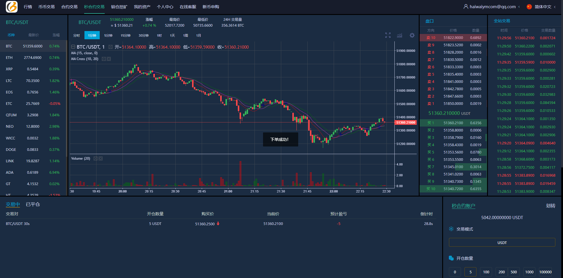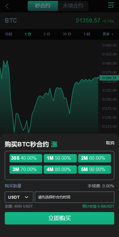系统功能支持:秒合约、合约、锁仓挖矿、新币认购功能,无平台币