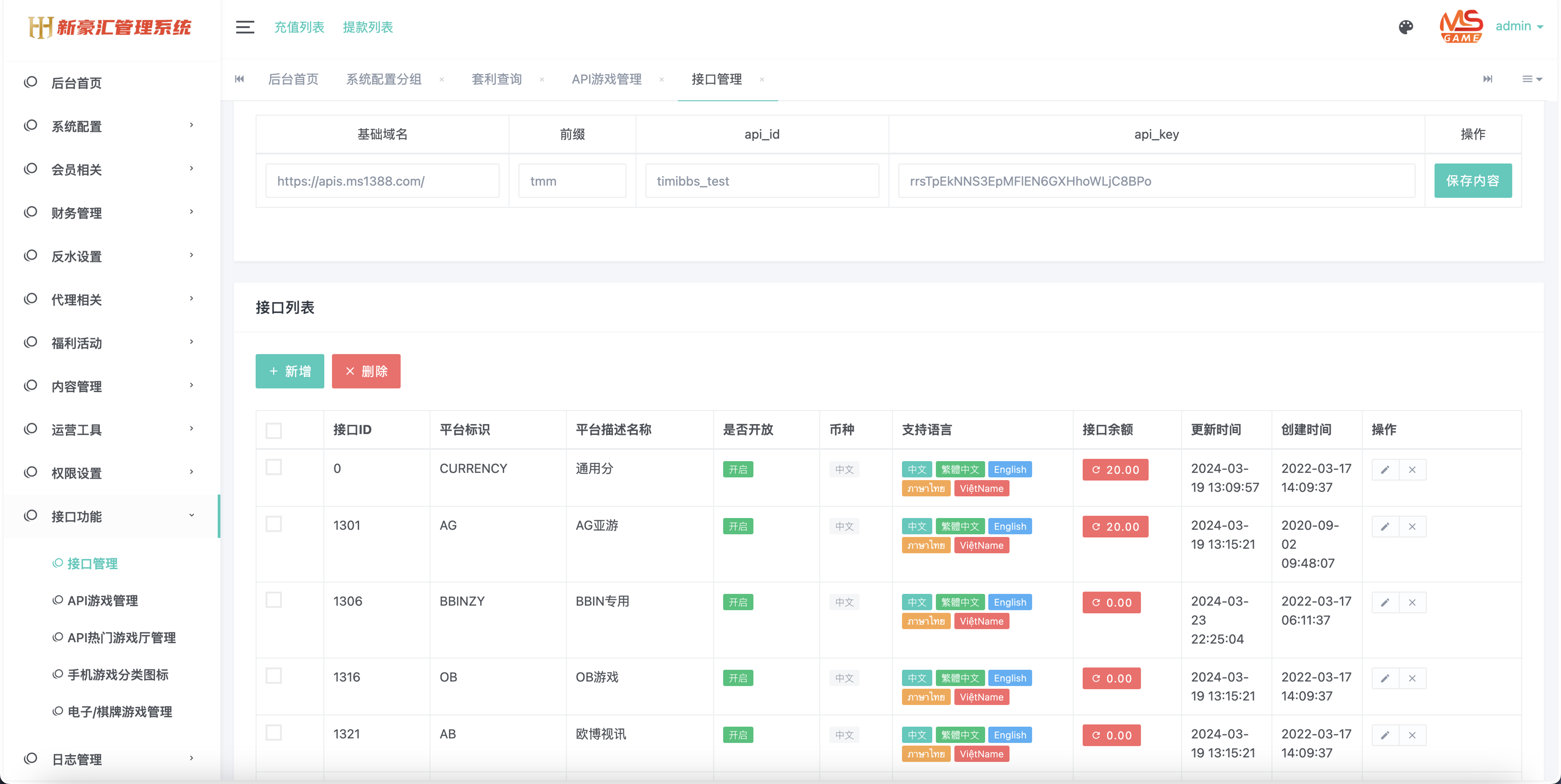 语言:5种,美盛的接口